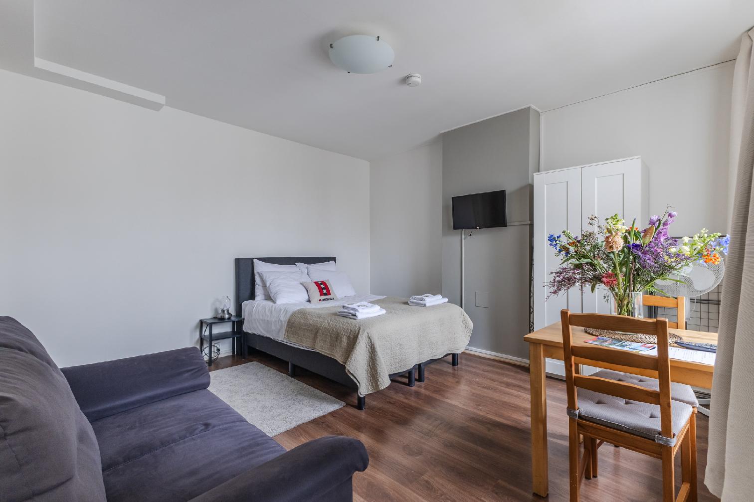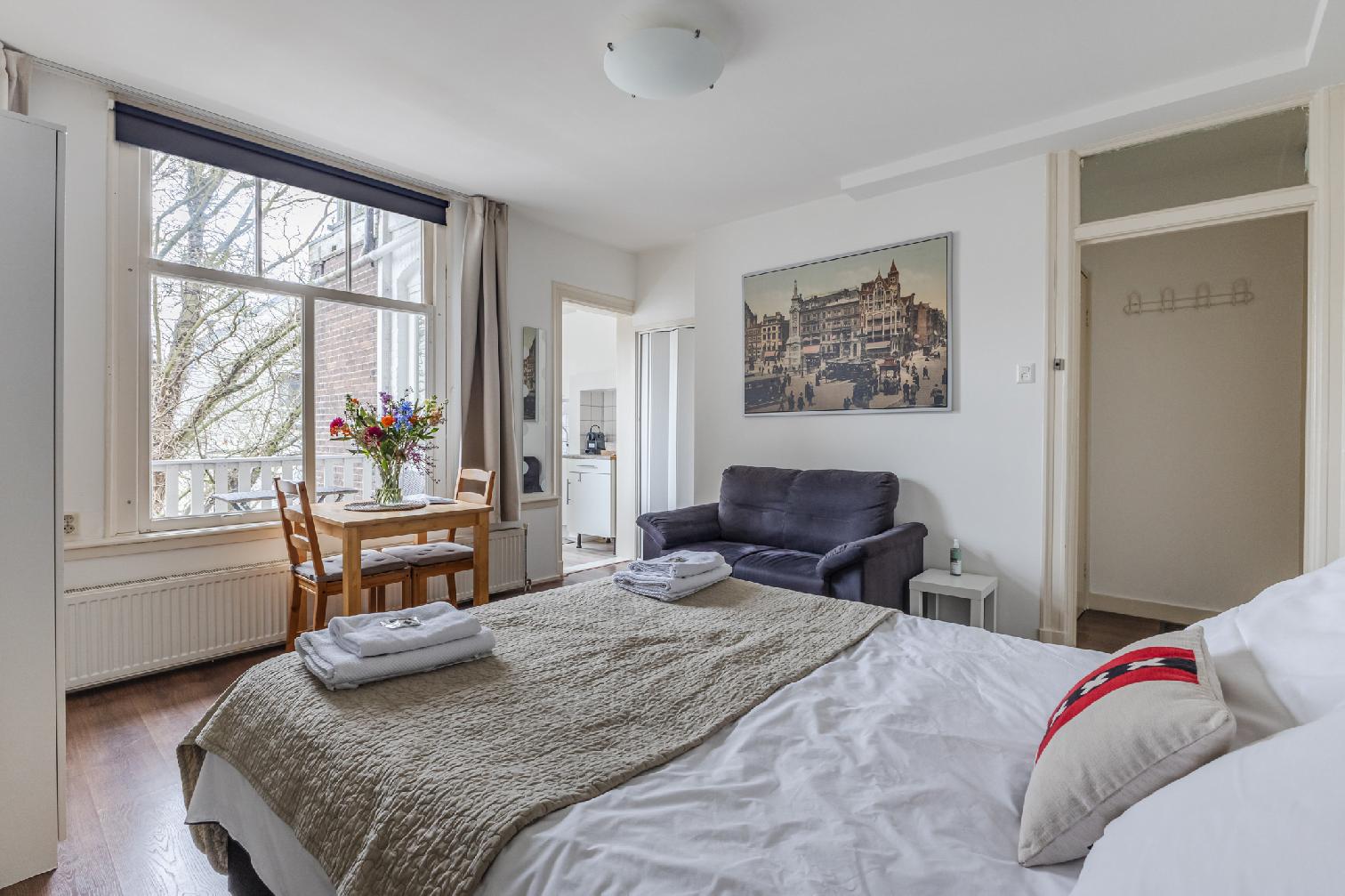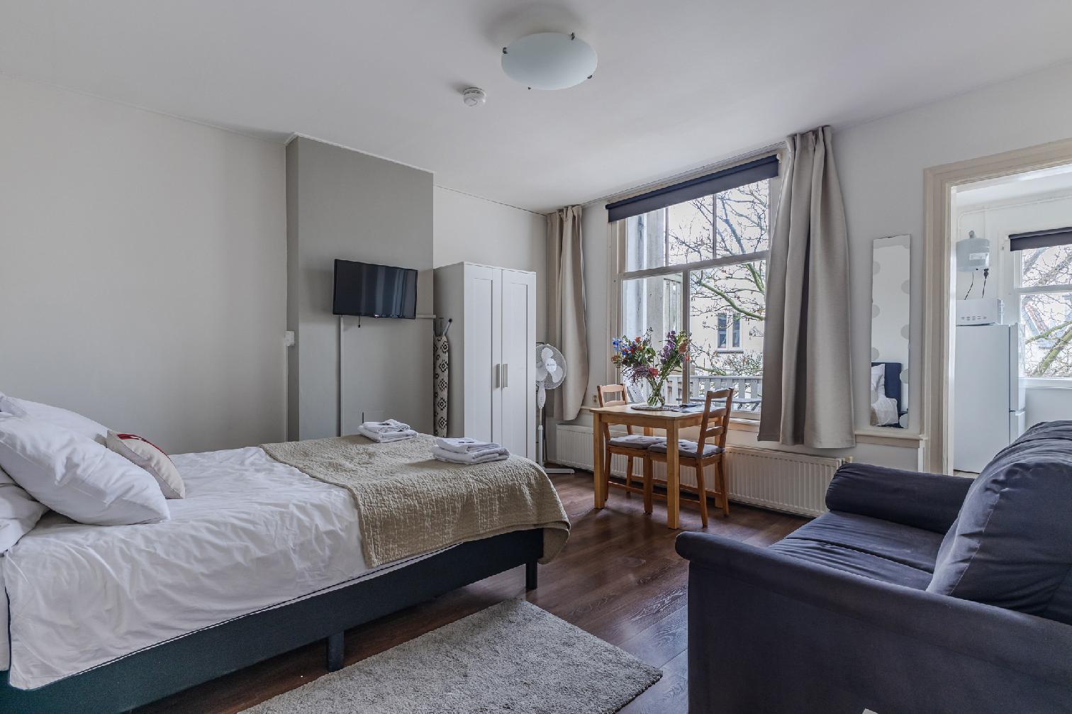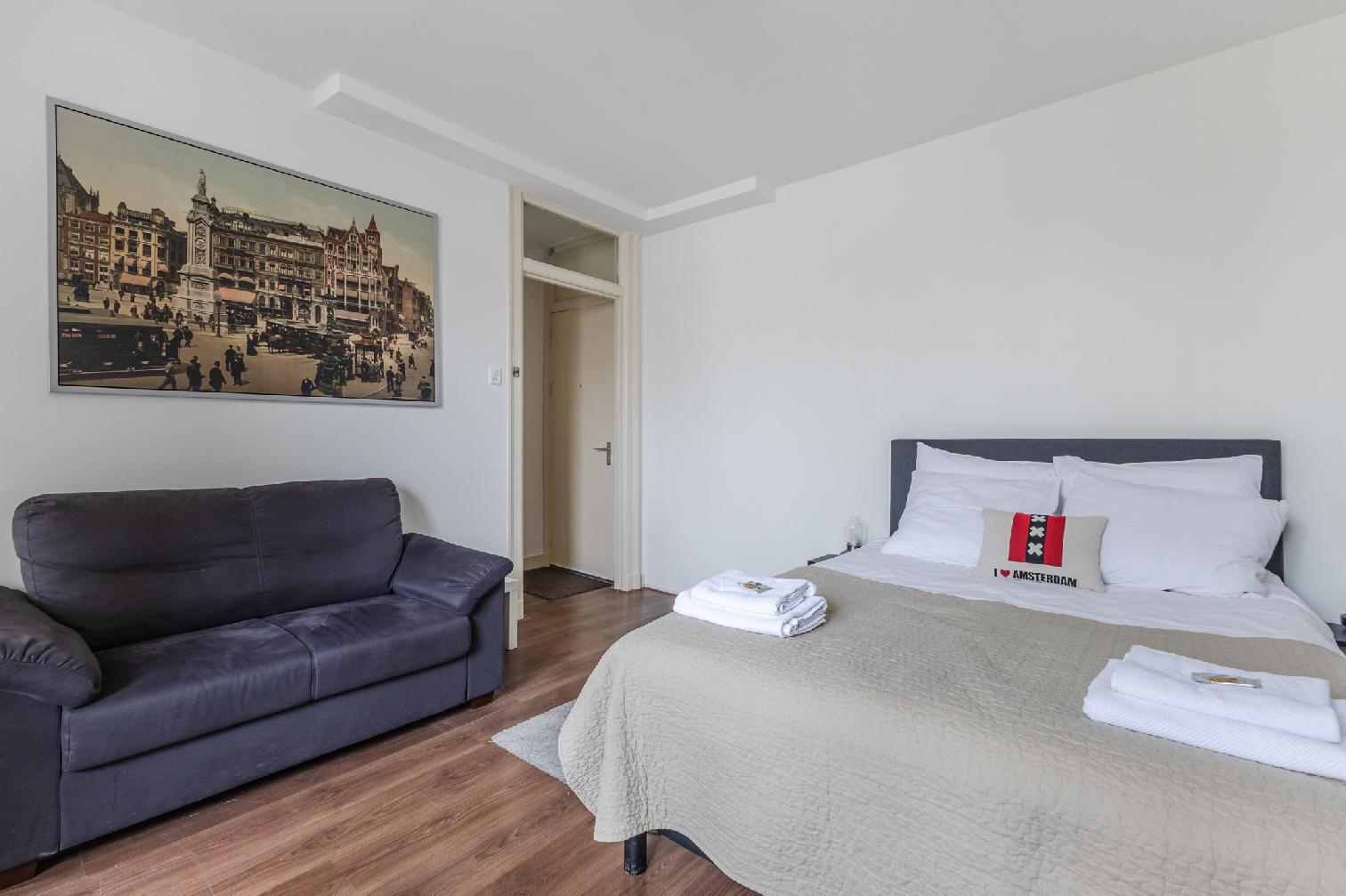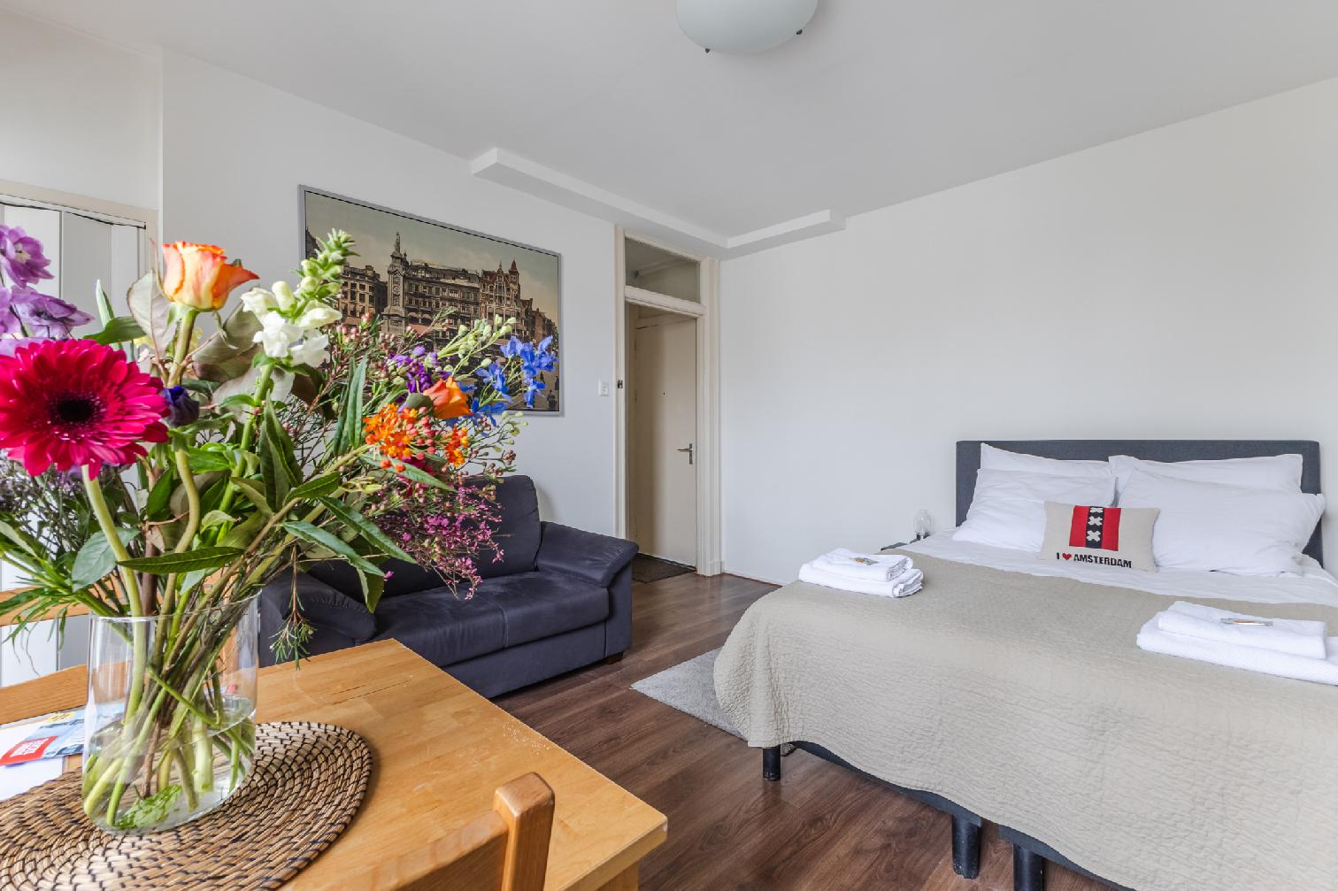 Modern studio apartment, housing up to two people in Amsterdam’s Pijp district, overlooking the vibrant Albert Cuyp Market.