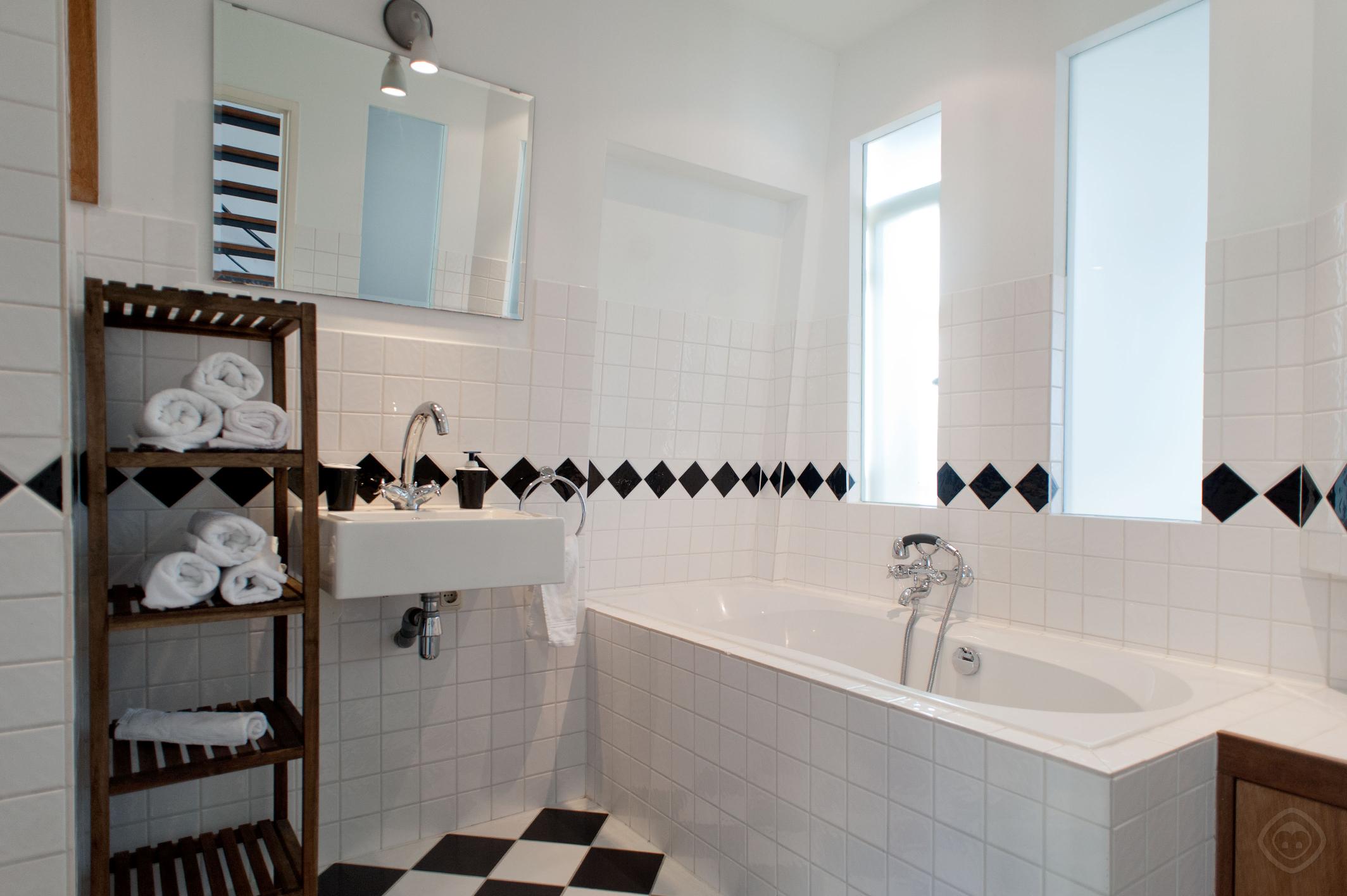 This stunning apartment is situated in a traditional Amsterdam building, recently renovated to effortlessly blend the modern with the historical. The living room is extremely spacious with antique ceilings and large windows that allow in plenty of natural light. The space is furnished with two sofas, a double sofa-bed, a dining table with seating for all guests and a television and DVD player. The open kitchen is modern and stylish and fully equipped with everything needed to prepare meals in the apartment, including an oven, hob, a microwave, a grill, a fridge, a freezer, a dishwasher, a toaster and a coffee machine. A flight of stairs leads to the second floor where you will find the traditional bedroom complete with sloping roof and original construction beams. The bedroom is spacious and comes furnished with a double bed, two single beds which can easily be put together and seating. Please note that there also is a baby cot available upon request. The bathroom with nice stained glass windows is contemporary and comes with a shower or a bath and another separate shower, washbasin and toilet. The top floor room also provides access to a charming balcony and is the ideal place to enjoy that morning coffee or evening glass of wine. Located close to the Vondelpark and the Museum Quarter, this apartment is ideal for business and leisure travellers after stylish accommodation in the heart of the city.Please be inform apartment has steep stairs.